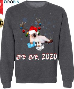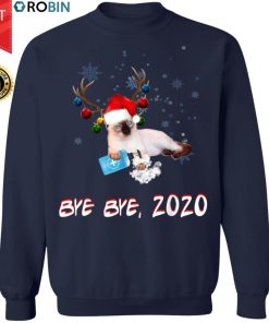 Applehead Siamese Cat Bye Bye 2020 Christmas New Year T-Shirt, Long Sleeve.