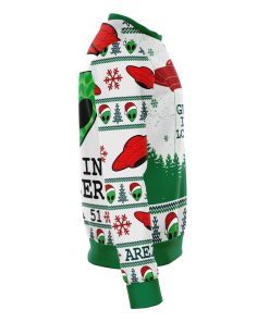 This Area 51 Get In Loser Premium Ugly Christmas Sweater available in adult and youth size.