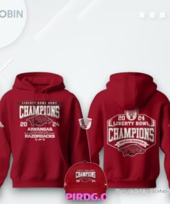 Arkansas Razorback Liberty Bowl Champions 2024 Red Hoodie features