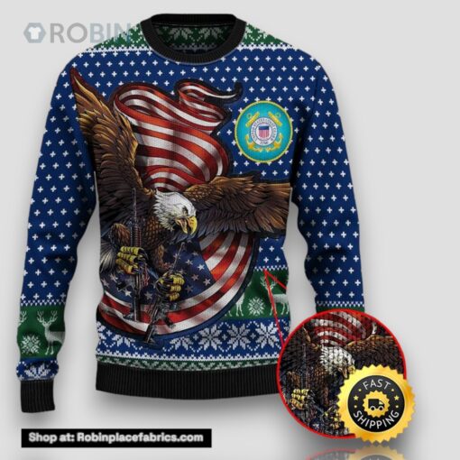 Armed Forces Uscg Coast Guard Military Veterans Day Gift For Father Christmas Ugly Sweater details