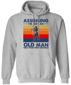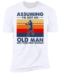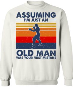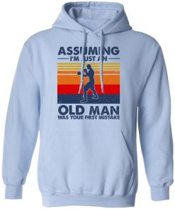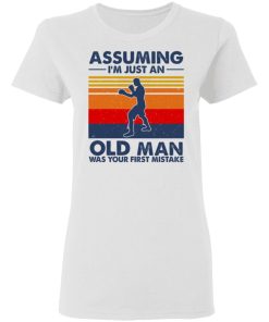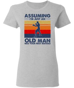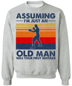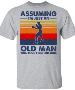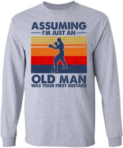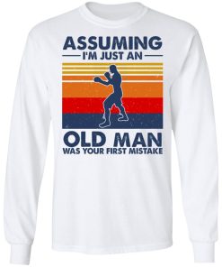 Assuming I’m Just An Old Man Boxing Was Your First Mistake shirt. Available in t shirt, long sleeve, tank top, hoodie, sweatshirt and multiple color. If you want in another color please contact us. Quality control before delivery. Print: Digital printing, colors won’t fade or peel. The design is printed with new age printing technology. It is printed with a water – soluble and eco – friendly ink. Treat yourself, or make this shirt the perfect gift on birthdays, anniversaries, holidays, or give a gift to friend, yourself, or family, or for no reason at all.