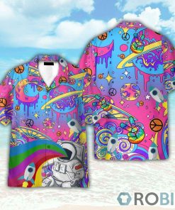 Astronaut In Colorful Hippie Space Hawaiian Shirt features
