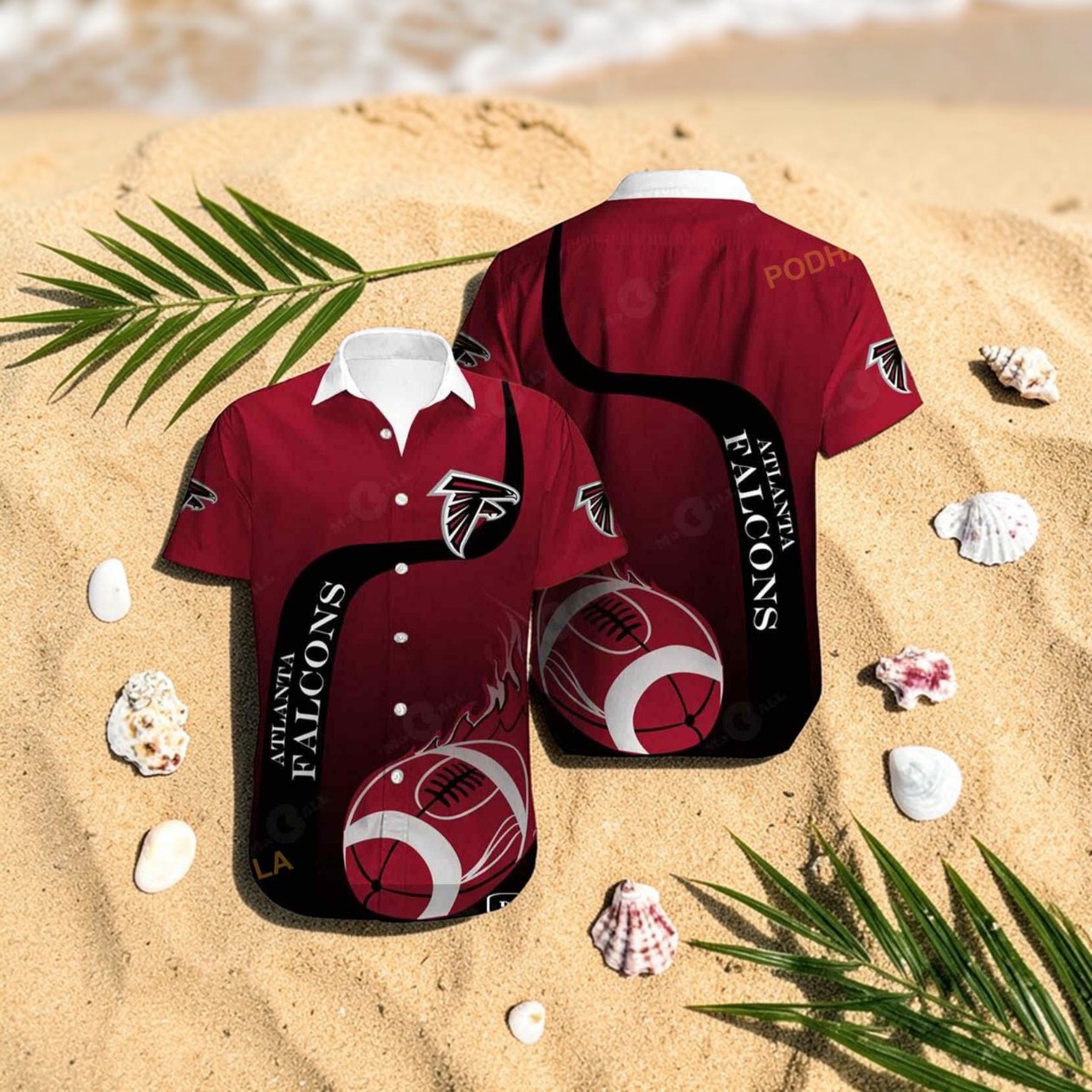 The deep maroon background sets a vibrant stage, punctuated by bold black sashes that curve across the shirt like a jersey panel in motion. Falcons logos are carefully placed—each patch sharp and deliberate—nestled among delicate palm fronds and subtle football graphics that weave an unexpected yet seamless blend of sport and island breeze. Vertical lines of uppercase typography run along the sash, adding a rhythmic pulse that echoes the energy of a packed stadium. Shell and sand motifs peek through, grounding the design with a hint of beachside calm. This shirt speaks to more than just team loyalty; it captures a lifestyle where the intensity of a game day collides with the laid-back spirit of summer. It’s for those who wear their fandom not just on game day but as part of their casual rotation, whether tailgating in the sun or catching a sunset with friends. The composition strikes a rare balance—striking yet easygoing—that mirrors the character of someone proud to call themselves a Falcons supporter without needing anything flashy. Ideal for anyone who finds joy in blending athletic passion with a touch of tropical flair, this Atlanta Falcons Hawaiian shirt fits comfortably into weekends filled with good company and spirited conversation. It’s the sort of gift that shows an understanding of both the team’s bold identity and the wearer’s love for vibrant, distinctive style.