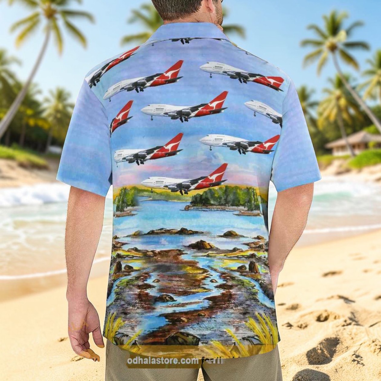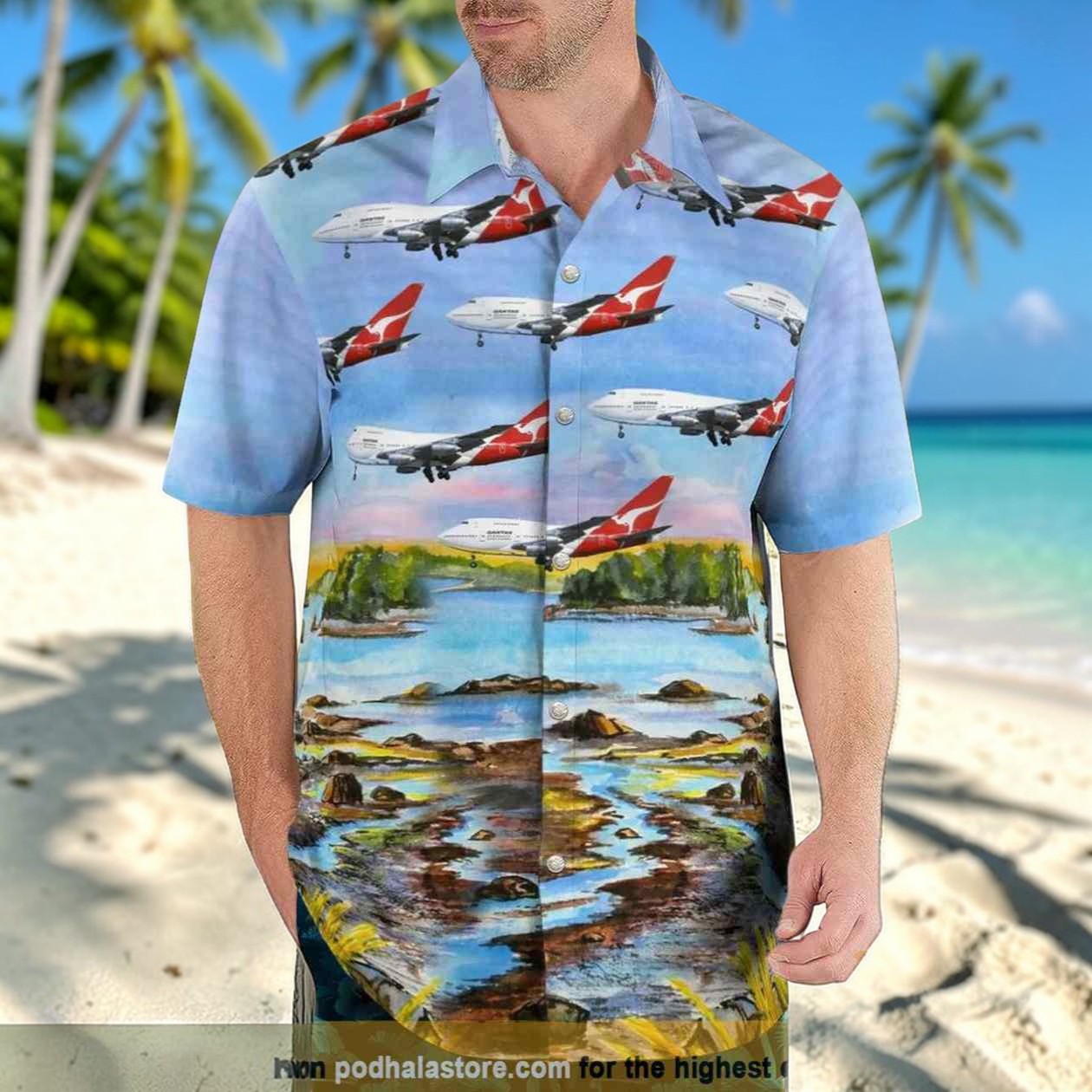 if you’re into aviation and tropical vibes, this Australia Qantas Boeing 747sp Hawaiian shirt is pretty awesome. It’s not your typical floral print—this one has a cool retro feel with these repeating graphics of the Boeing 747sp cruising across a bright blue sky. What really sets it apart is the beach scene at the lower back, kind of like you’re catching a sunset on some remote Aussie shore. The way the colors fade in a gradient from the top down makes it feel like you’re literally wearing a slice of sky and sea. I think this shirt would be a hit with anyone who loves planes or just wants something that stands out without being over the top. If you’ve got a friend who’s always daydreaming about their next trip or collects quirky shirts, this would be a no-brainer for a birthday or just because. It strikes that playful, nostalgic balance—kind of like remembering those vacation days and those big, iconic jets that everyone loves. Honestly, it’s great for casual outings or throwing on for a beach day, bringing a little bit of adventure to whatever you’re doing. If you like cool, conversation-starting pieces that aren’t just loud but have some personality, you’d probably dig this Australia Qantas Boeing 747sp Hawaiian shirt.