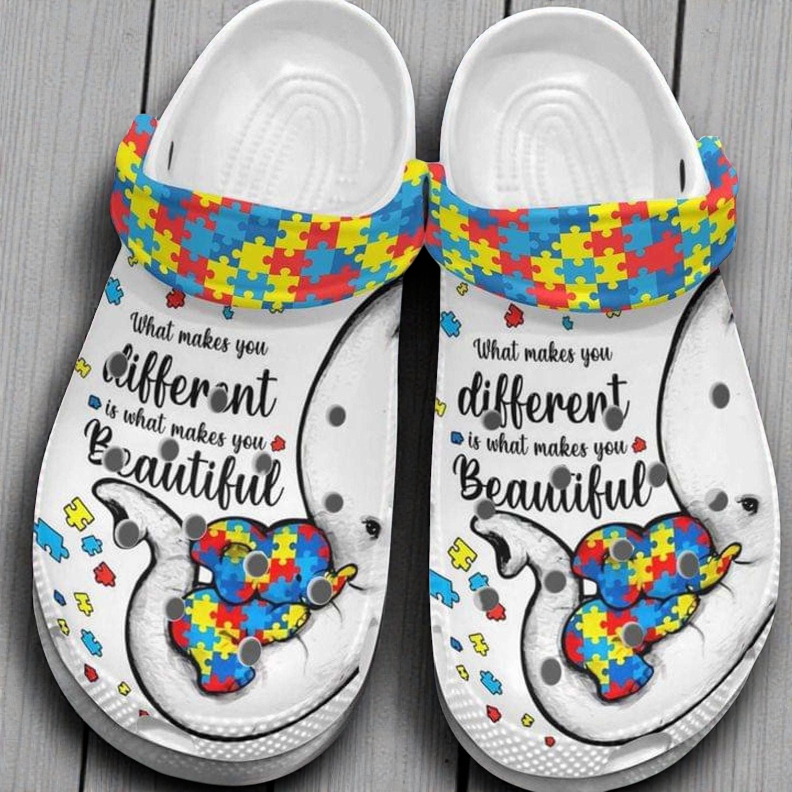 Show your support and celebrate neurodiversity! These classic Crocs featuring an elephant mom and baby with a puzzle piece design are a stylish way to promote acceptance and understanding. Different *is* beautiful! Get yours today and step out with pride. 🧩🐘❤️