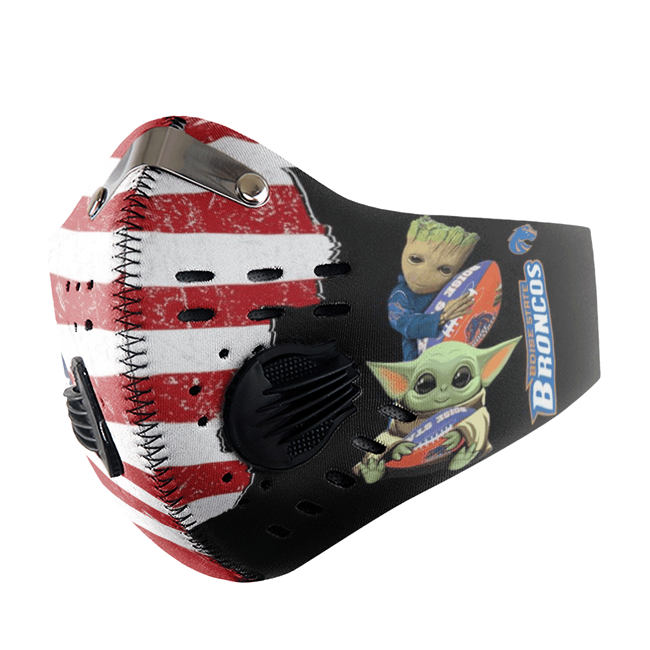 Baby Yoda And Groot Hug Boise State Broncos Face Mask with Replaceable N95 Filter.
