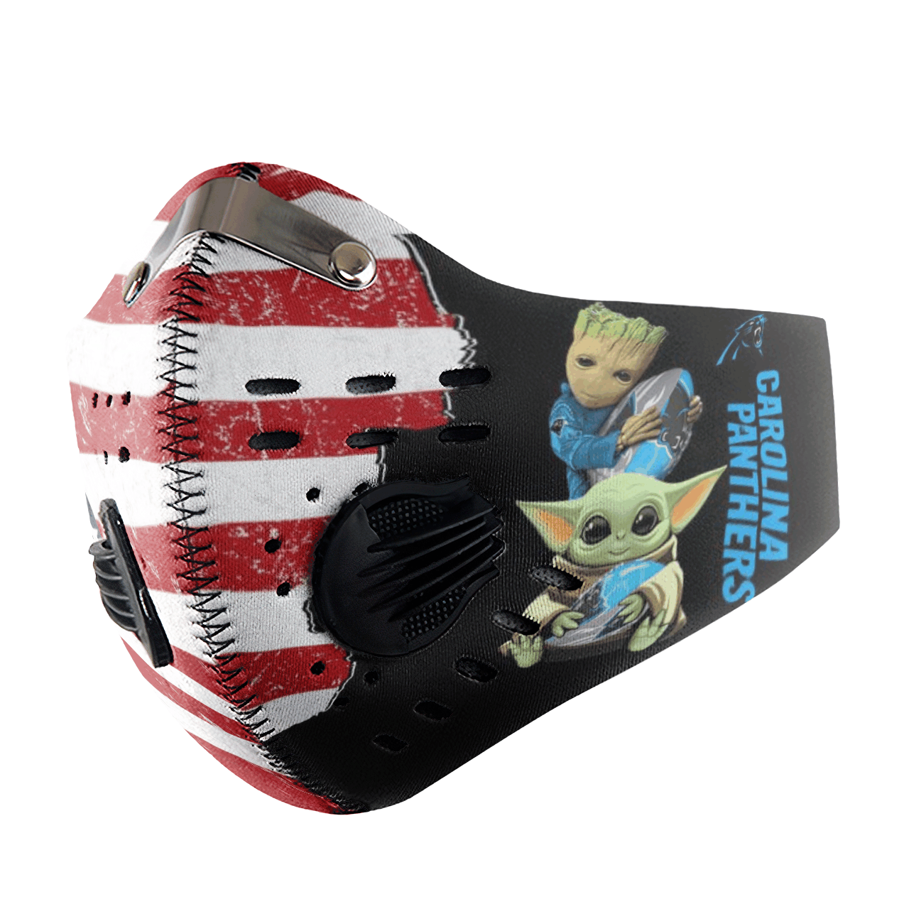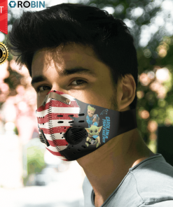Baby Yoda And Groot Hug Carolina Panthers Face Mask with N95 Filter Sheet