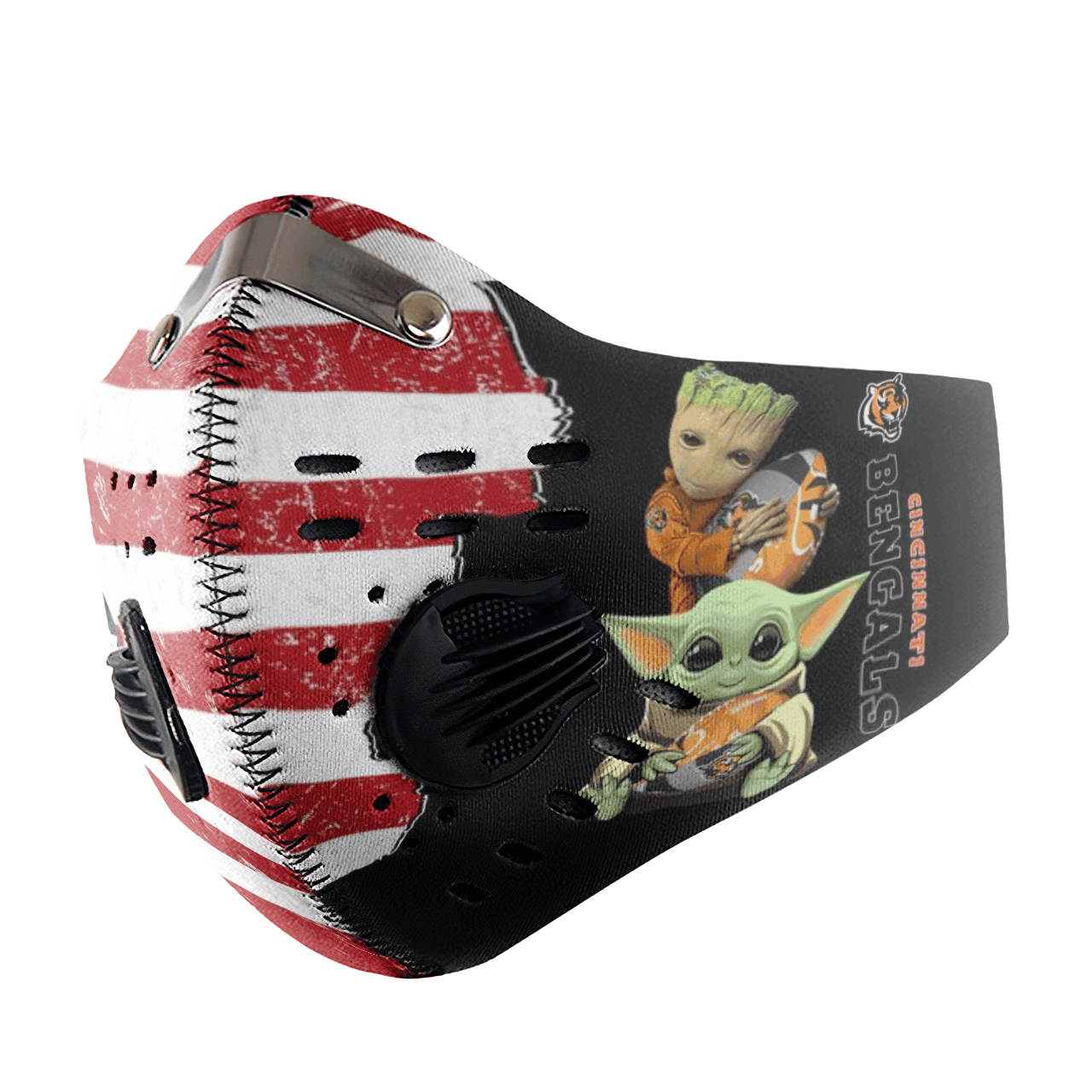 Baby Yoda And Groot Hug Cincinnati Bengals Face Mask with N95 Filter