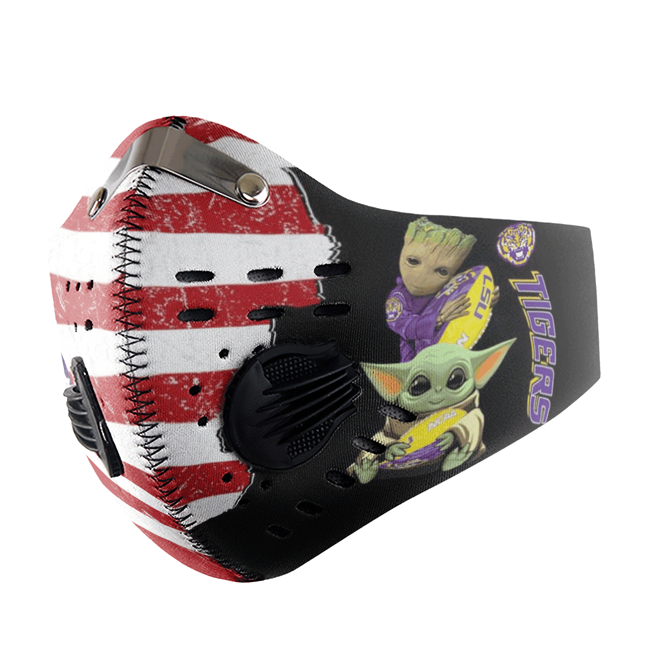 Baby Yoda And Groot Hug LSU Tigers Face Mask with N95 Filter