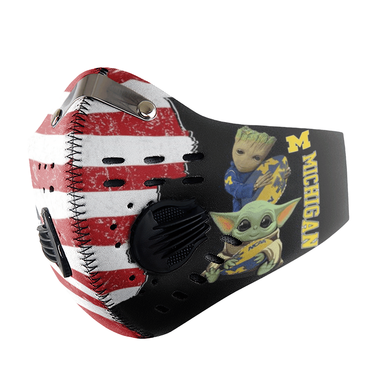 Baby Yoda And Groot Hug Michigan Wolverines Face Mask with N95 Filter