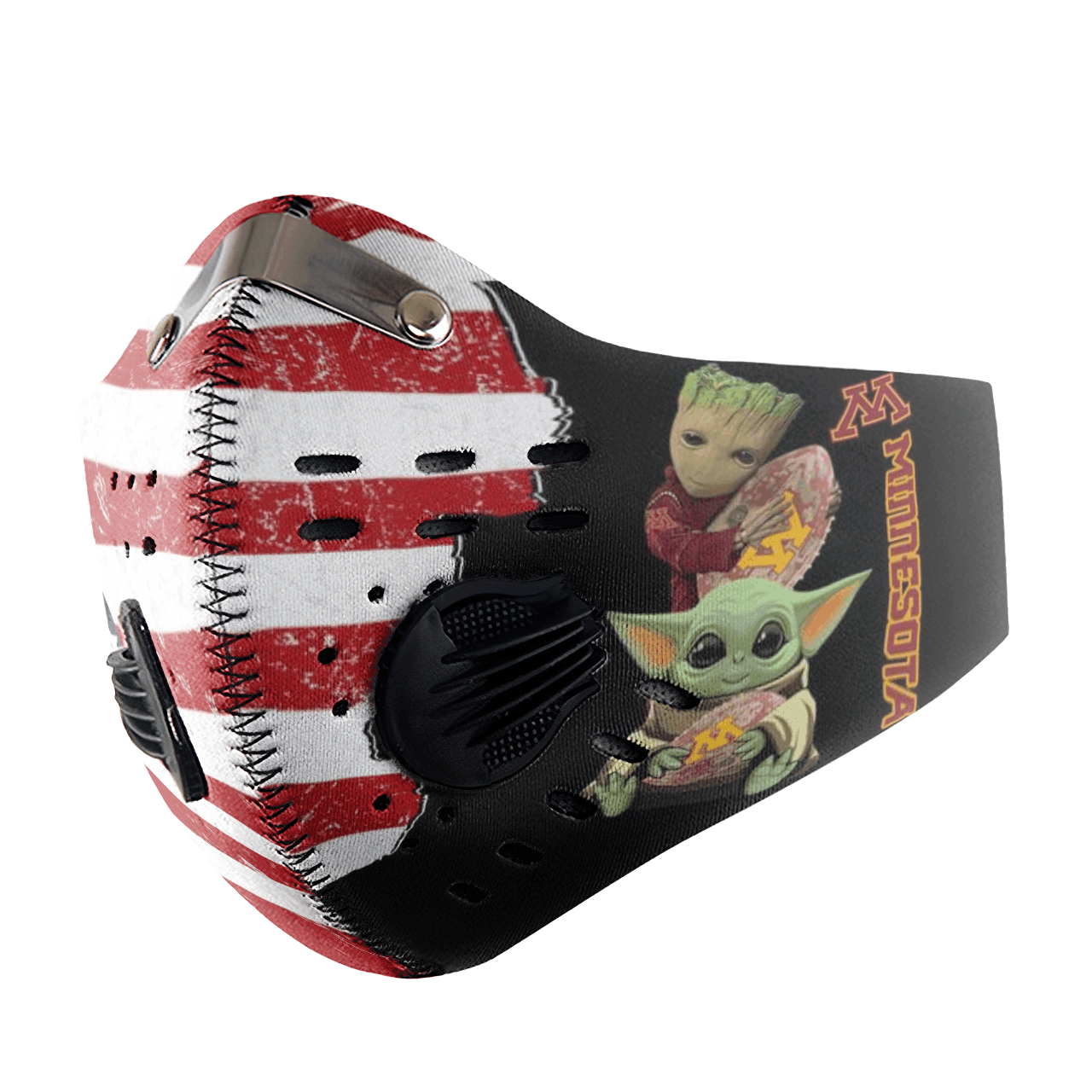Baby Yoda And Groot Hug Minnesota Golden Gophers Face Mask with N95 Filter