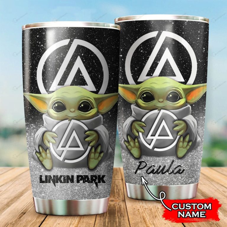 Baby Yoda Hug Linkin Park Band Tumbler Cup
