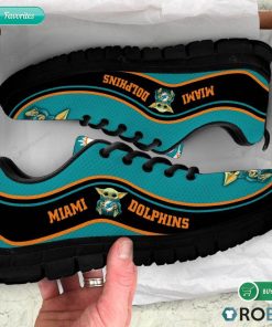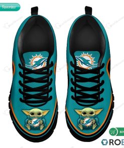 Baby Yoda Hug Miami Dolphins Football Sneakers – Breathable Running Shoes.
