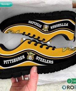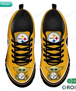 Baby Yoda Hug Pittsburgh Steelers Football Sneakers – Breathable Running Shoes.