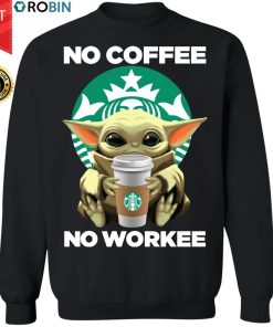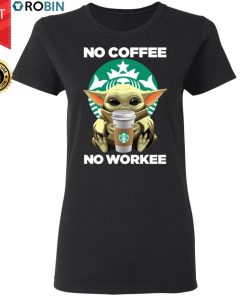 Baby Yoda Hugs Starbucks No Coffee No Workee Shirt