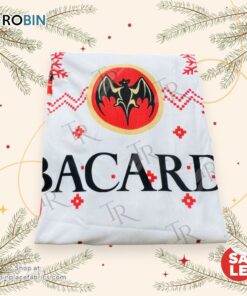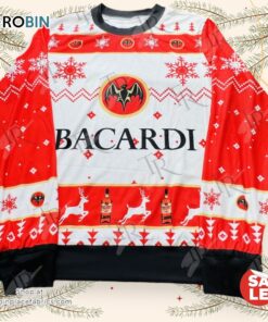 Bacardi Christmas Ugly Sweater Red & White Holiday Party Attire with Iconic Bat Logo