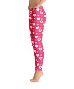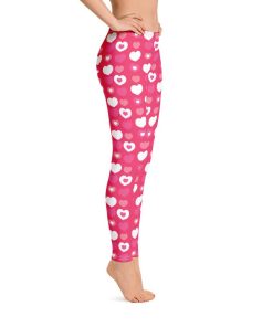 Bachelorette Party Leggings, Hearts Print Pink Leggings
