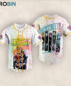 The Backstreet Boys Back At The Beach Cancun 2024 Baseball Jersey Shirt Style exudes trendy and casual vibes. With its classic baseball jersey design, this shirt offers a sporty yet fashionable look. The relaxed fit and lightweight fabric make it perfect for casual outings or beach wear. The playful colors and bold graphics add a fun touch to any outfit. Perfect for fans of the Backstreet Boys or those looking to add a bit of nostalgia to their wardrobe.