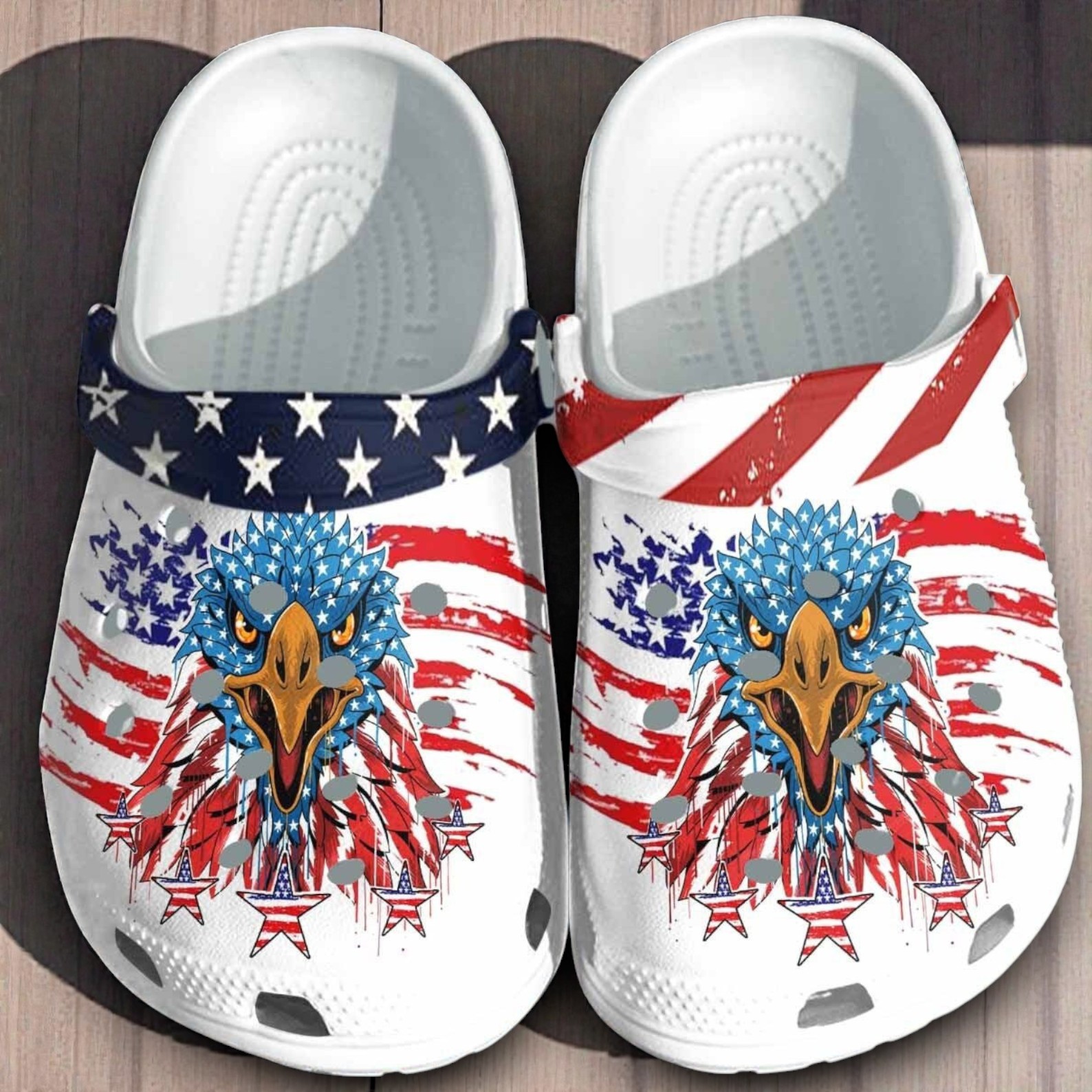 If you are proud of where you come from, these shoes speak for themselves. We designed these Crocs with a fierce, high-definition Bald Eagle front and center—the most iconic face of American strength.