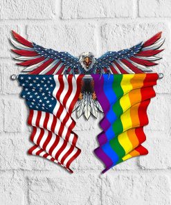 Bald Eagle LGBT Flag Proud Cut Metal Sign.