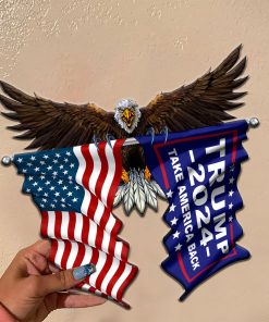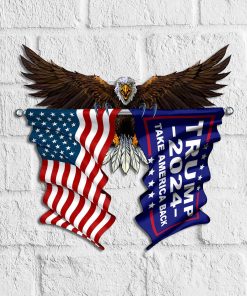 Bald Eagle Trump 2024 and US Flag Cut Metal Sign.