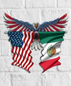 Bald Eagle US and Mexico Flag Cut Metal Sign.