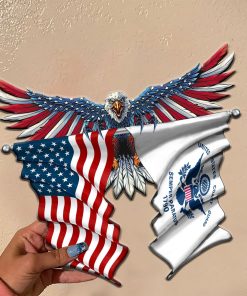 Bald Eagle US Coast Guard and US Flag Cut Metal Sign.