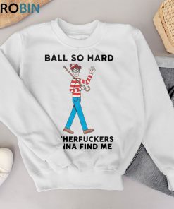 The Ball So Hard Motherfuckers Wanna Find Me Shirt is a fun and stylish statement piece that makes a bold fashion statement. The phrase 'Ball So Hard Motherfuckers Wanna Find Me' is emblazoned across the chest in bold lettering, creating a powerful and memorable look. Whether you are attending a party, a concert, or just hanging out with friends, wearing the Ball So Hard Motherfuckers Wanna Find Me shirt will always guarantee you stand out from the crowd.