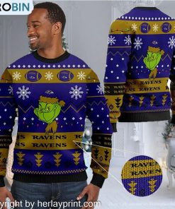 Get into the holiday spirit with this adorable 3D sweater featuring everyone's favorite Christmas character, the Grinch. The sweater is designed with the Baltimore Ravens American NFL Football Team logo, adding a sporty touch. Perfect for both men and women, this cute and cozy sweater is an ideal choice for any ugly sweater party or casual holiday gathering. With its fun and festive design, you'll be sure to spread holiday cheer wherever you go.