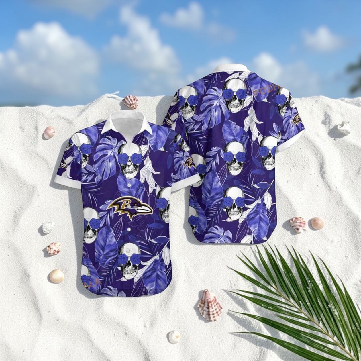 The vivid purple backdrop of this Baltimore Ravens tropical skull shirt immediately catches the eye, setting a bold stage for an unusual fusion of motifs. Blue palm leaves sweep across the fabric, lending a breezy, island vibe that contrasts with the edgy skull designs peppered throughout. The sharp detail in these skulls, combined with their placement among the foliage, creates a sense of playful tension—tough yet relaxed. Nestled subtly within this mix, the Ravens logo stands out in a way that feels natural rather than forced, blending team pride with a distinctive style statement. This shirt speaks to those who don’t shy away from mixing flair with fandom. It’s more than just team colors or logos; it's personality woven into a tropical mood with an athletic edge. The balance between the dark, fierce skull imagery and the uplifting feel of palm fronds reflects a wearer who embraces both intensity and fun. A fan drawn to this must appreciate creative boldness, someone who brings an offbeat twist to game day or weekend wear. For anyone thinking about gifts, this piece fits well into warmer seasons or casual get-togethers, where style can be as relaxed as it is striking. Being a Baltimore Ravens tropical skull shirt, it offers a fresh alternative for those looking to stand out without stepping away from their team loyalty. Whether heading to a summer party or catching a game with friends, this shirt translates a unique vibe into everyday wear.