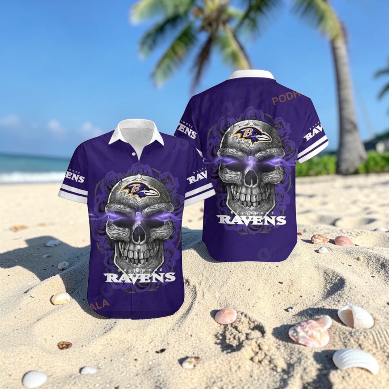 Baltimore Ravens Sugar Skull NFL Gift For Fan Hawaiian Graphic Print Shirt, Ravens Gifts for Fans