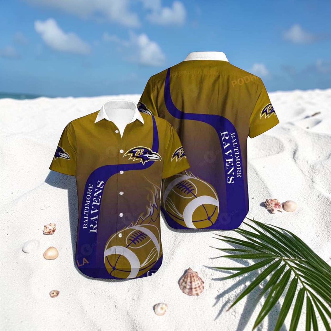 There’s something about wearing your team’s colors that goes beyond just cheering from the sidelines—it’s about carrying that spirit with you wherever you go. This Baltimore Ravens shirt does just that, but with a twist that stands out from the usual fan gear. It’s not just football and logos slapped on fabric; it’s a bold blend of tropical vibes and ancient Egyptian motifs, woven right into the purple and gold. Look closer and you’ll notice how the iconic Baltimore Ravens logos merge seamlessly with palm leaf accents, giving it a fresh, unexpected energy. The text is vertically stacked in a serif style that feels both classic and modern, wrapping around the shirt with a subtle curve that keeps the eye moving. Football graphics are worked into the design, but they never overpower—this is about vibrancy and fandom in perfect balance. This shirt speaks directly to Ravens supporters who want to wear their pride in a way that’s relaxed but unmistakably spirited. Whether you’re heading to a game day or just catching up with friends during the season, it’s a lively conversation starter. It also makes a thoughtful gift for anyone who loves mixing their team loyalty with a bit of fun and flair—especially if they’re into vacations or casual summer events. For those who appreciate a look that honors their team but keeps things fresh and unexpected, this Baltimore Ravens shirt is a standout choice. It’s not just about what you wear; it’s about how you show up.