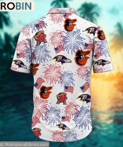 Baltimore Sports Team Pattern Happy 4th Of July Hawaiian Shirt details