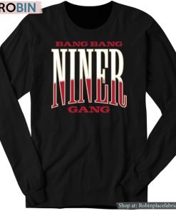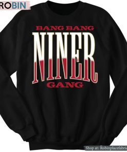 The Bang Bang Niner Gang Shirt is a stylish and fun way to show support for the San Francisco 49ers. With its bold design and vibrant colors, this shirt is sure to make a statement. Made from high-quality materials, the shirt is comfortable to wear and durable enough to hold up to repeated washings. Whether you’re watching the game at home or cheering on your team at the stadium, the Bang Bang Niner Gang Shirt is the perfect addition to any fan’s wardrobe.