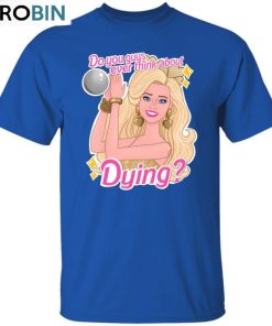 The Bar Bie Movie 2023 Shirt You Guys Ever Think About Dying Unisex Shirt is a unique and thought-provoking piece of clothing. Featuring the iconic Bar Bie logo and an intriguing slogan, this shirt is sure to turn heads and spark conversations. Its unisex design ensures that it can be enjoyed by both men and women, further adding to its versatility. Made from high-quality materials, this shirt is not only stylish but also comfortable to wear. Perfect for those who like to make a statement with their fashion choices, this shirt is a must-have for any Bar Bie fan.