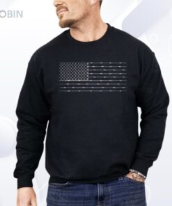 Show your patriotic spirit with this unique shirt featuring the American flag intertwined with barbed wire. A bold statement piece that blends ruggedness and love for the USA. Perfect for those who want to express their individuality and American pride. Get yours today!