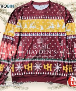 Basil Hayden’s Christmas Sweater Kentucky Straight Bourbon Ugly Sweater with Snowflakes & Reindeer, Festive Holiday Knit for Men and Women
