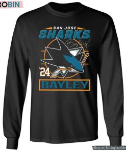 The Bayley San Jose Sharks 24 Shirt features a striking design that pays tribute to the team’s iconic colors and logo. The shirt is emblazoned with bold graphics that showcase the team’s fierce shark mascot, creating a powerful and eye-catching piece. Reminiscent of the classic sharks starter jacket, the shirt embodies the spirit of the team and is a must-have for any die-hard Sharks fan. The use of the team’s signature colors and logo ensures that the shirt stands out and makes a statement wherever it is worn.