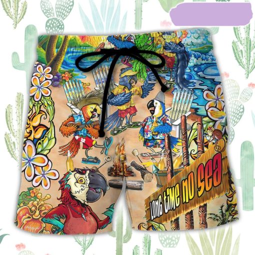 Beach Parrot Long Time No Sea Beach Short, Gift for Holiday Summer