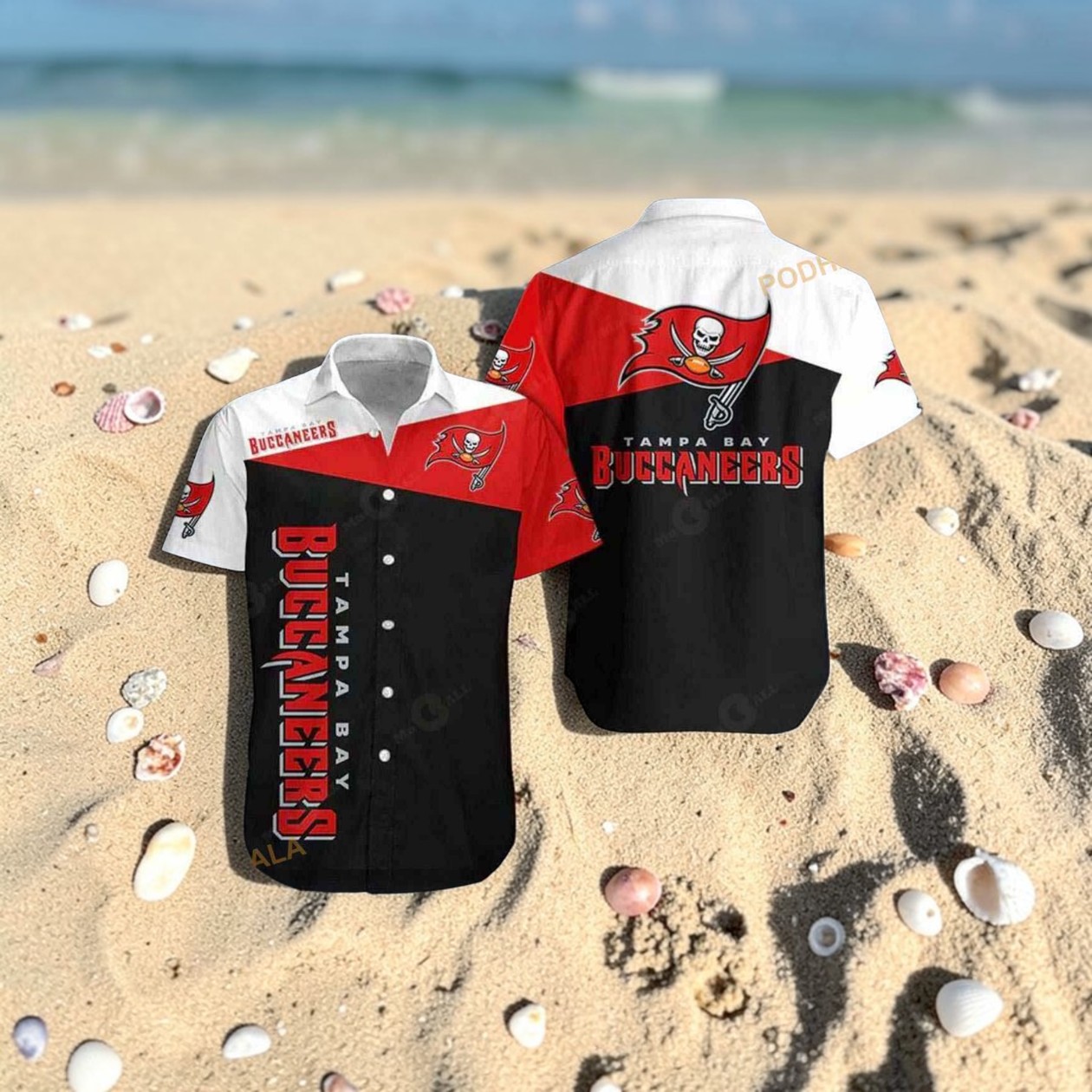 Few teams capture the spirit of resilience and hometown pride quite like the Tampa Bay Buccaneers. This shirt channels that energy with a bold fusion of retro sports branding and a breezy tropical vibe, making it more than just a piece of fan gear—it's a statement. The design bursts with the Buccaneers’ iconic colors—red, black, and white—arranged in striking diagonal and vertical panels that mimic the dynamic movement of a fluttering flag. The team’s logo sits proudly, unmistakable and fierce, while blocky, athletic typography runs vertically along one side, giving it a unique edge that stands out whether you're at a beach outing or a spirited game day party. Crafted like a classic Hawaiian shirt but infused with unmistakable Buccaneers energy, this piece balances laid-back summer style with fan fervor. The shirt’s layout cleverly separates colors as if paying homage to the team’s flag, creating a sense of motion and depth without overwhelming the eye. It’s exactly the kind of gear that appeals to fans who want to celebrate their team beyond the stadium—whether that means relaxing by the ocean or firing up a grill at a backyard gathering. Collectors will appreciate the way this shirt merges sports enthusiasm with vintage-inspired flair, making it a standout addition to any Buccaneers fan’s wardrobe. It’s also a thoughtful gift for those who wear their fandom on their sleeve, or in this case, across their chest and back. For anyone scouting for a Tampa Bay Buccaneers shirt that carries personality as bold as the team itself, this design certainly delivers.