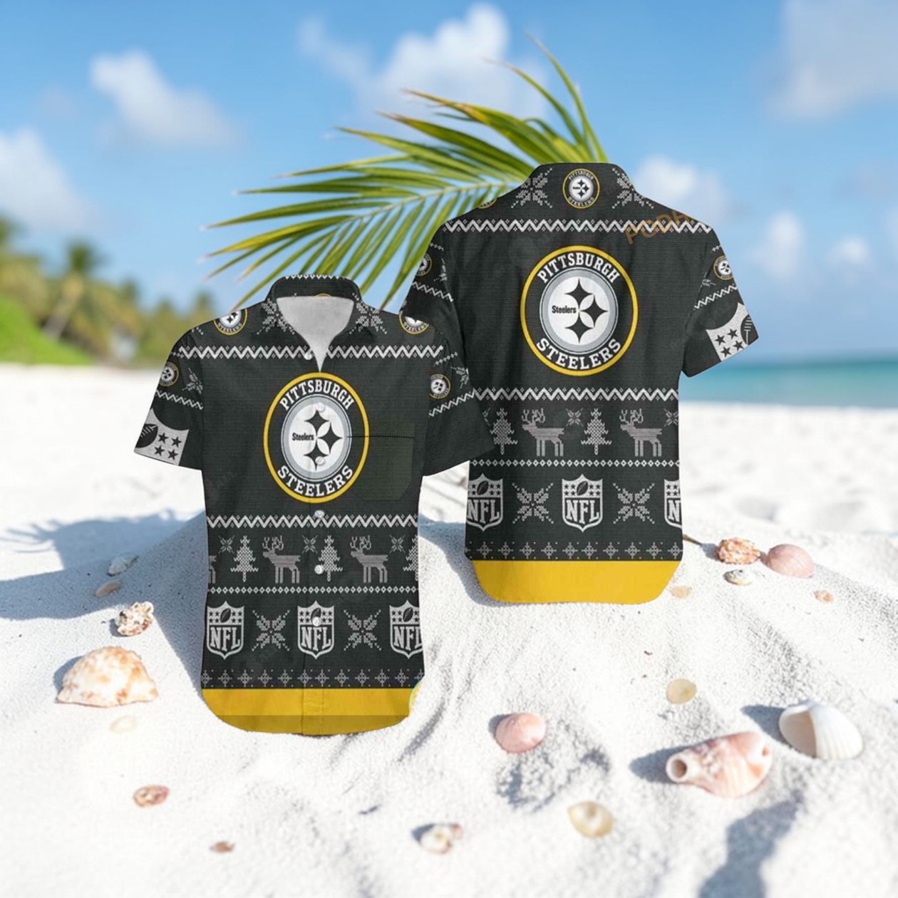 There’s something about mixing sports pride with holiday cheer that brings a certain energy to any room. For Pittsburgh Steelers fans who enjoy a bit of festive fun, the Pittsburgh Steelers ugly Christmas sweatshirt captures that spirit perfectly. The design features a knitted pattern woven with plenty of Steelers black and yellow, accented by snowflakes, reindeer, and NFL logos in a way that feels both playful and unmistakably team-focused. The round emblem style—bold and blocky—anchors the look with a classic Crest vibe that’s instantly recognizable to anyone who follows the Steelers. This isn’t just about wearing team colors; it’s a statement piece for those who embrace fandom as part of their identity, especially when the holiday season rolls around. It’s the kind of sweatshirt that works well at tailgates and casual gatherings—places where passion for the Steelers and a lighthearted celebration meet. Fans who love to show their spirit loud and proud, without taking themselves too seriously, will naturally gravitate toward this. Beyond the game day scene, it’s an easy pick for those looking for a holiday gift that combines personality and practicality. Whether tucked under the tree or worn to a festive party, it strikes a balance between sporty pride and seasonal humor. The Pittsburgh Steelers ugly Christmas sweatshirt isn’t just apparel; it’s a nod to community and celebration, perfect for anyone who wants to carry that Steelers energy well into December and beyond.