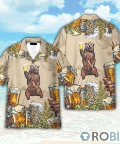 Bear and Beer Hawaiian Shirt features