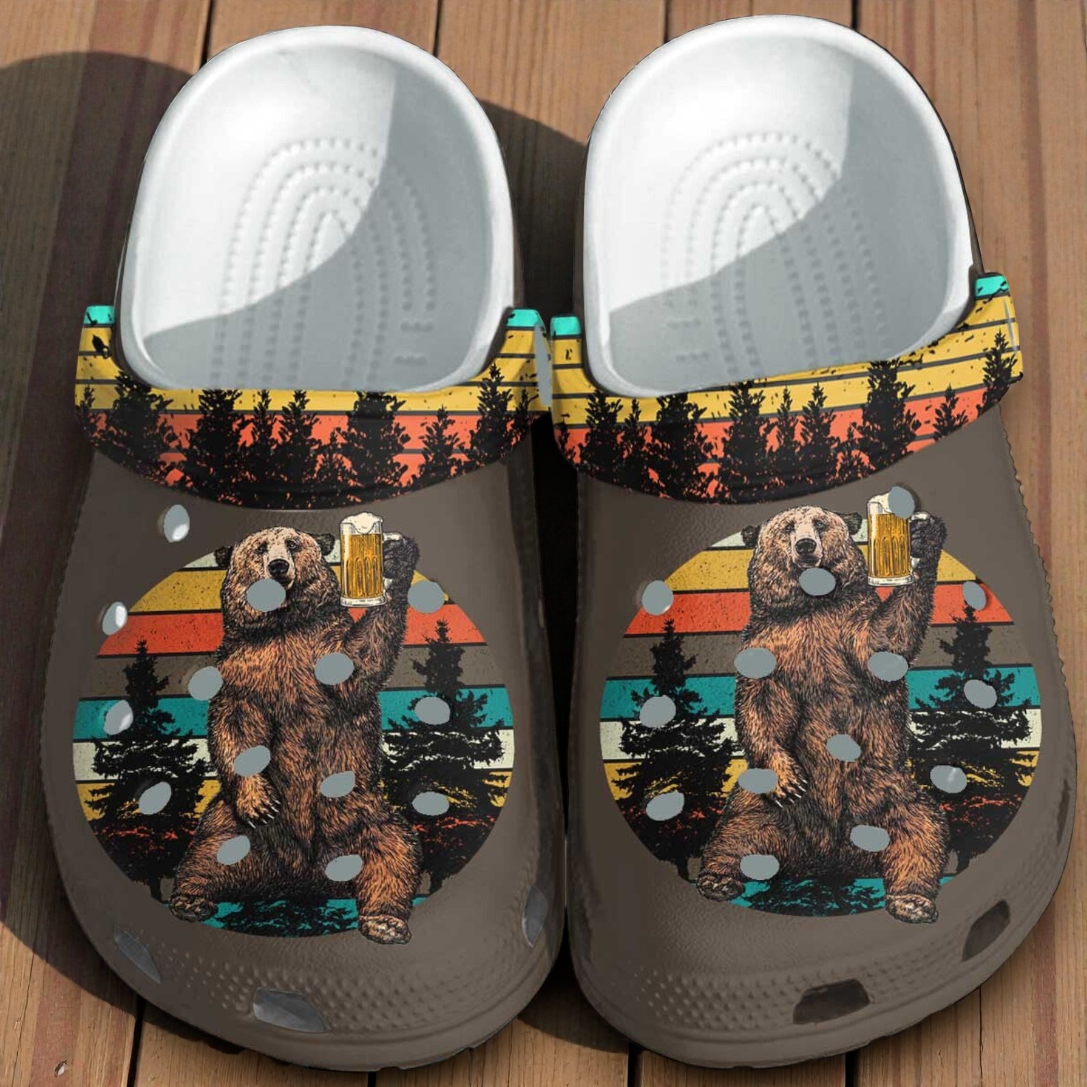 Bear Drinking Beer Crocs – Retro Forest Camping Shoes