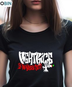 The Beatrice Is The Bridge Out shirt is a unique and eye-catching garment that showcases a bold and edgy design. The shirt features a black background with a vibrant and colorful illustration of a bridge breaking apart. The words Bridge Out are prominently displayed in bold white letters, while the name Beatrice is written in a stylish font at the bottom of the design. This shirt is perfect for those who want to make a statement and stand out from the crowd with their fashion choices.