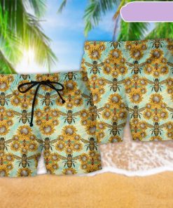 Bee Loves Sunflowers Style Beach Short, Gift for Holiday Summer