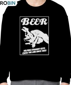 The Beer Helping Straight Guys Cross The Line Since 1862 Shirt is a fun and humorous shirt that celebrates the long-standing tradition of beer helping straight guys let loose and push their boundaries. With its bold font and vintage-inspired design, this shirt is a great conversation starter and a nod to the camaraderie and bonding that often takes place over a few drinks. Whether worn to a party or casual outing, this shirt is a lighthearted way to show appreciation for the social lubricant that is beer.