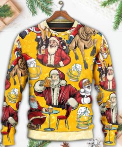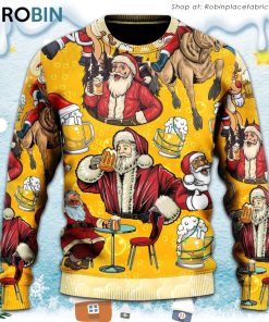 Get ready to spread some holiday cheer with this hilarious Ugly Christmas Sweater featuring a festive Beer Santa motif. With its bright and bold colors, this sweater is sure to make you stand out at any Christmas party. The design showcases Santa Claus enjoying a cold beverage, adding a fun and playful twist to the traditional Christmas icon. Perfect for those who love to celebrate the season with a sense of humor, this sweater is the ultimate combination of merry and funny. It’s the perfect attire to make everyone laugh and make your Christmas a jolly one.