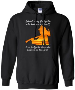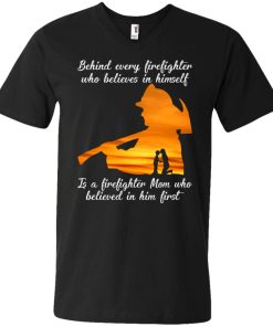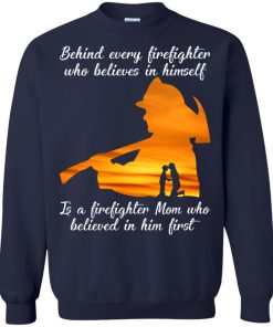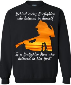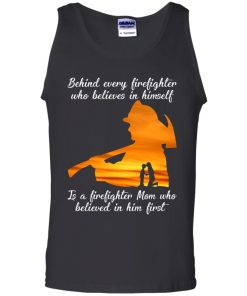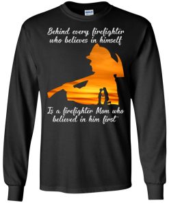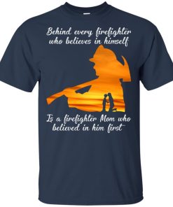 Behind every firefighter who believes in himself Is a firefighter mom who believed in him first t shirt, tank top, long sleeve, hoodie, sweatshirt, vneck