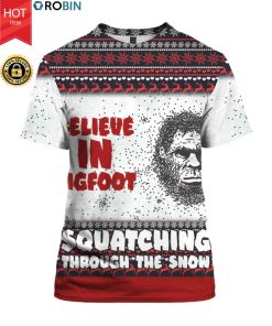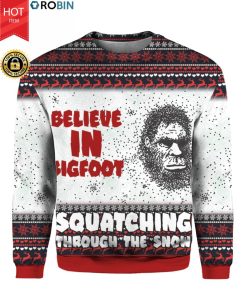 Believe In Bigfoot Squat Ching Through The Snow 3D Ugly Christmas Sweater Hoodie.