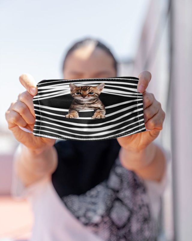 - Comfy 3 layer protective face mask with black soft stretch ear straps.